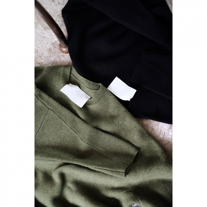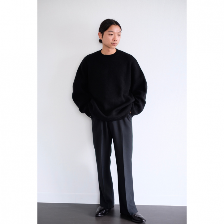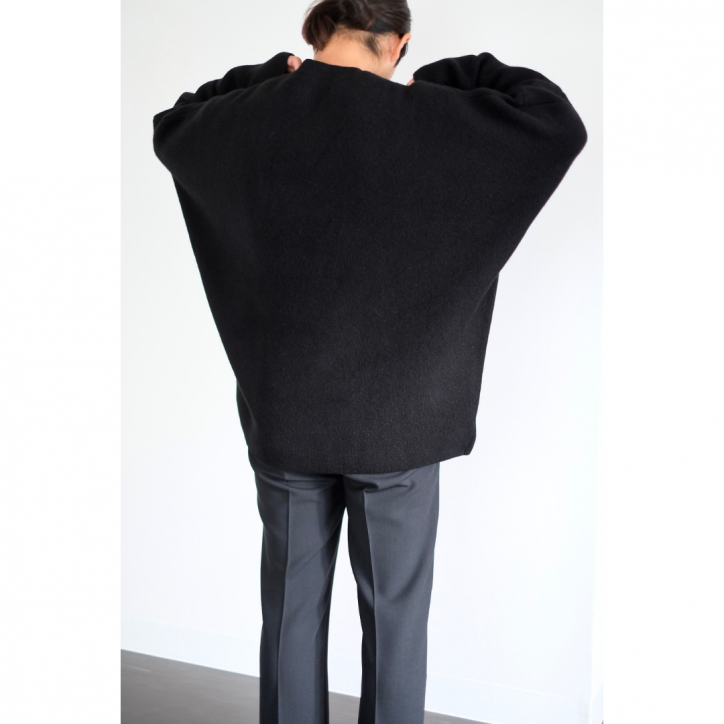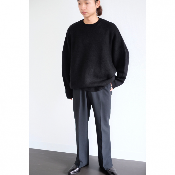 オーバーサイズのニットなので何も考えず、ばさっと、雑に、スウェット感覚で着ていただきたい1着。