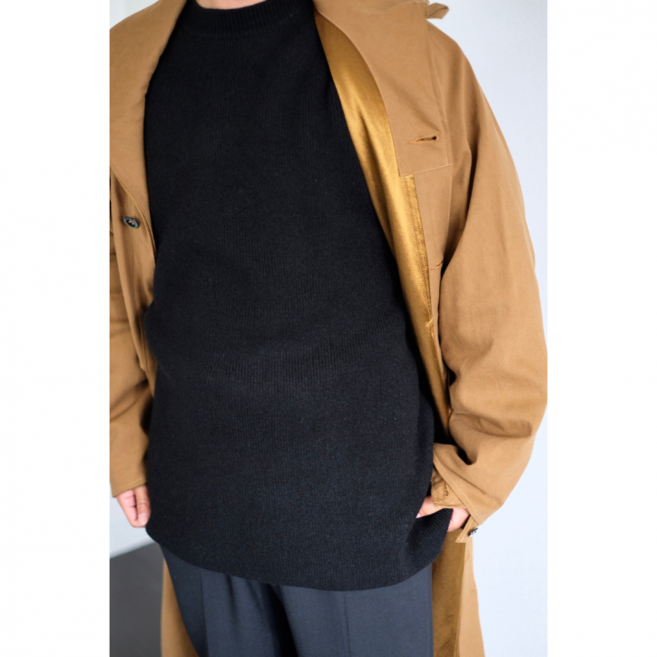 そのヤクの中でも最も太い番手と最も細い番手を掛け合わせ、重くならないようハイゲージで丁寧に編み立てています。
